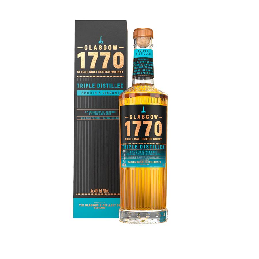 ZONA PRODUTTIVAGlasgow MATERIA PRIMAMalto Scozzese, acqua pura del Loch Katrine. DISTILLAZIONEProdotto artigianalmente nei quattro alambicchi pot still, Tara, Mhairi, Margaret e Frances, 1770 combina l'orzo scozzese più raffinato e l'eccezionalmente acqua pura di Loch Katrine per creare il distillato migliore. Tripla distillazione. COLOREAmbra con riflessi oro. PROFUMOIl naso si apre con note dolci di vaniglia e cioccolato bianco, con ben evidenti i frutti estivi come le pesche oltre a pere e mele. SAPOREAl palato è morbido ed equilibrato, con ricordi di vaniglia, caramello e panna, uniti a frutti di bosco, fiori e mandorla. Il sorso prosegue rotondo e gentile, con note di miele, anice e pepe nero. Il finale è lungo e speziato. NOTECostituita nel 2014, Glasgow Distillery Company prende il nome da una delle distillerie originali di Glasgow, fondata a Dundashill nel 1770 e rimasta attiva fino all'inizio del XX secolo. Glasgow un tempo ospitava centinaia di distillerie fino a quando la Grande Depressione e il Proibizionismo portarono alla loro chiusura. Come da tradizione, la Glasgow Distillery Company utilizza solo il miglior malto scozzese e l’acqua limpida del Loch Katrine per dare vita ad un whisky davvero raffinato. INVECCHIAMENTOBotti ex Bourbon, botti vergini di rovere bianco